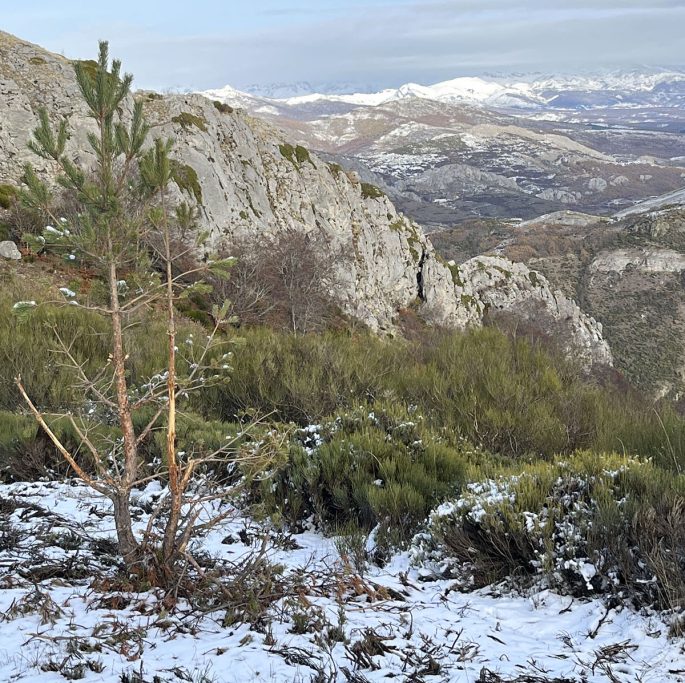 El frío seguía y el viento se apuntó a mediodía, haciendo de menos los escasos grados que osaban superar el cero en el termómetro. Con menos siete a las ocho de la mañana, la cosa anduvo por seis positivos, aunque la sensación, como digo, era menor. La niebla jugaba a esconderle la quebrada cresta al Curavacas, santo y seña de estas magníficas montañas que, desde una privilegiada postura, pude contemplar.