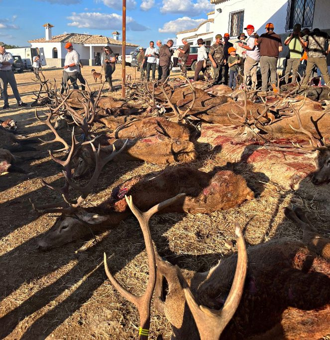 Hasta presentar a muy buena hora en la junta de carnes: 26 venados, con una calidad media altísima (11 por encima de los 150 puntos y dos bronces); 29 jabalíes, con tres machos grandes (uno de ellos medalla de bronce); un muflón; 20 ciervas; y cuatro muflonas.