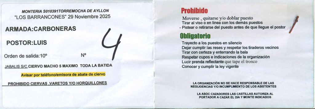 Puestos: 73 / Sin cupo de jabalíes (se podían abatir 5 venados en el cómputo total de la montería) / Rehalas: 16