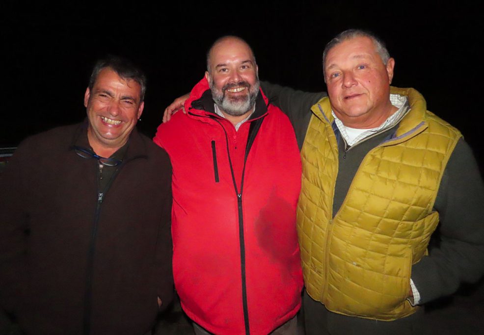 Rafa y Pascual venían tan contentos, y eso que eran de los pocos que no habían tirado, pero habían disfrutado mucho, son ante todo CAZADORES y saben apreciar lo que fue un festival de montería aunque ellos no tuvieran suerte.