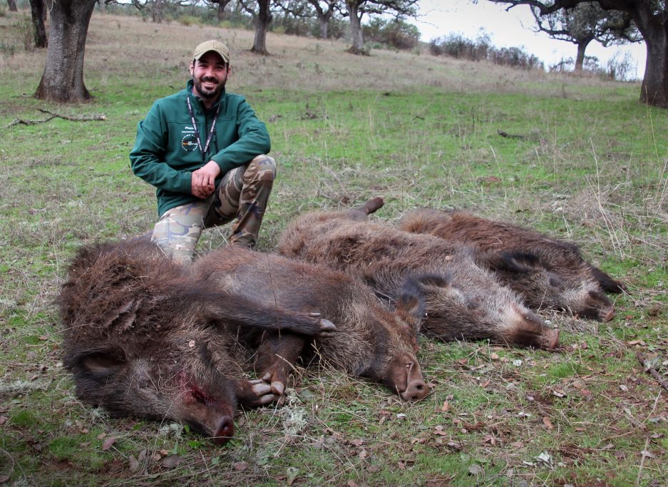 La familia Matos quiso aportar su granito de arena con un par de jabalíes, al igual que José María Romero que abatía antes de soltar un precioso venado de doce puntas.