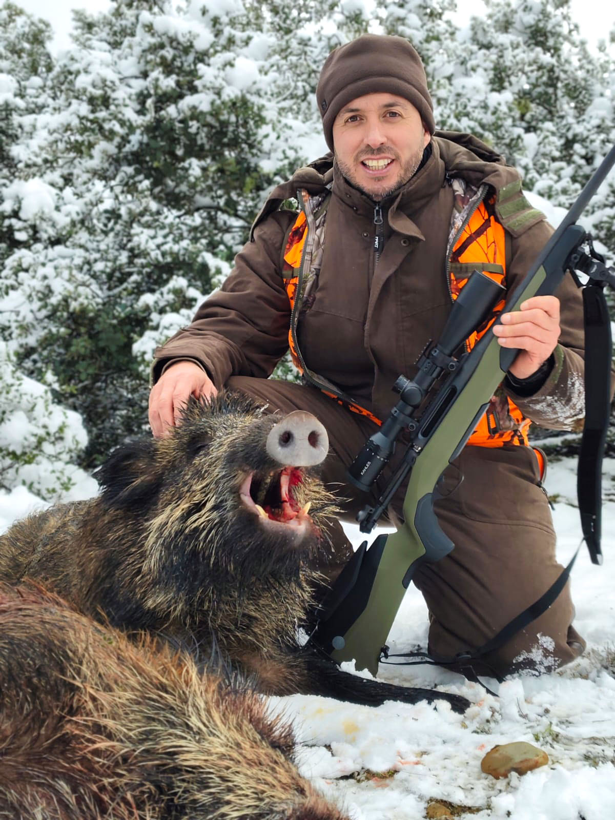 Asimismo, dar las gracias a «mis» rehalas, sobre todo a mi mano derecha dentro del monte, IVÁN ‘Tali’, pequeño gran hombre, comprometido y fiel a su casa, jefe de rehalas castilleras, que me hace fácil el trabajo. Es imprescindible: viene, revisamos montes, sueltas y selección de rehalas en función del monte a batir.